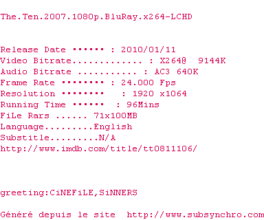 Voir le nfo de la release The.Ten.2007.1080p.BluRay.x264-LCHD