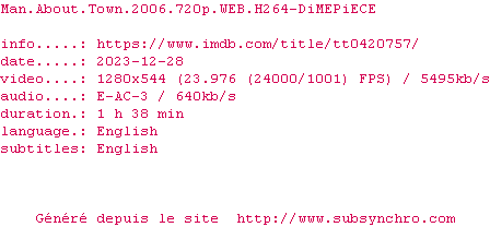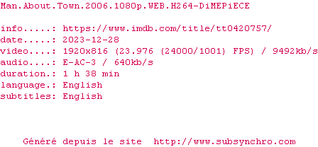 Voir le nfo de la release Man.About.Town.2006.1080p.WEB.H264-DiMEPiECE