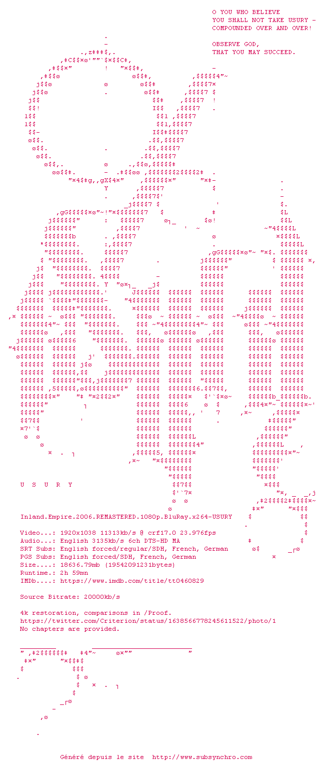 Voir le nfo de la release Inland.Empire.2006.REMASTERED.1080p.BluRay.x264-USURY