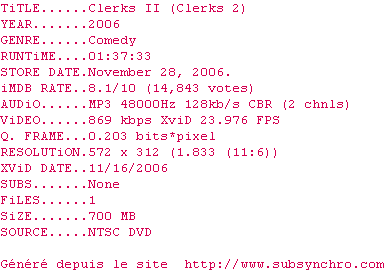 Telechargez le RSS « Fichier de la release Clerks.2.2006.DVDRip-aXXo »
