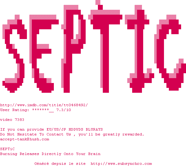 Il n'y a actuellement aucun sous-titre pour cette release. Cliquez ici pour en ajouter un.
