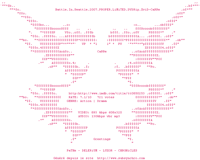 Voir le nfo de la release Battle.In.Seattle.2007.PROPER.LiMiTED.DVDRip.XviD-CaRRe