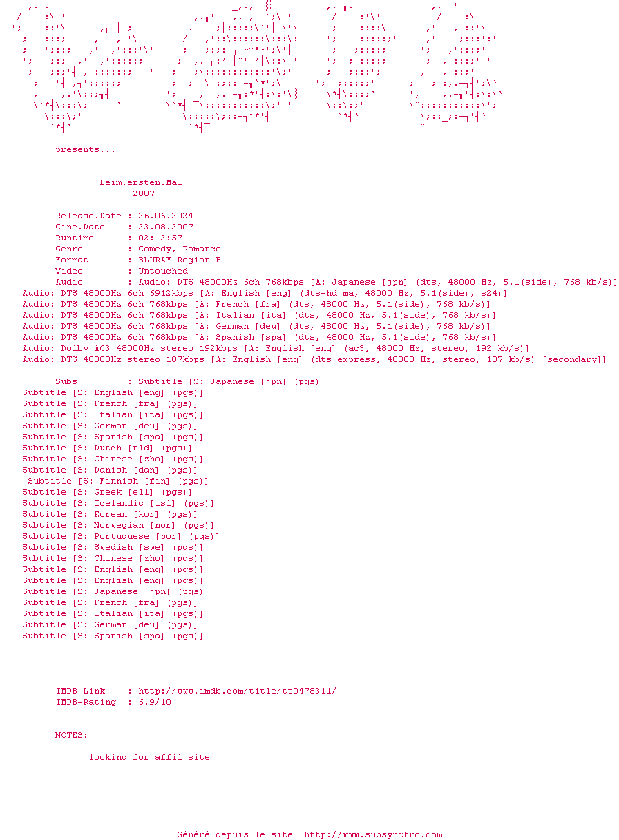 Voir le nfo de la release Beim.Ersten.Mal.2007.MULTi.COMPLETE.BLURAY.iNTERNAL-VEiL