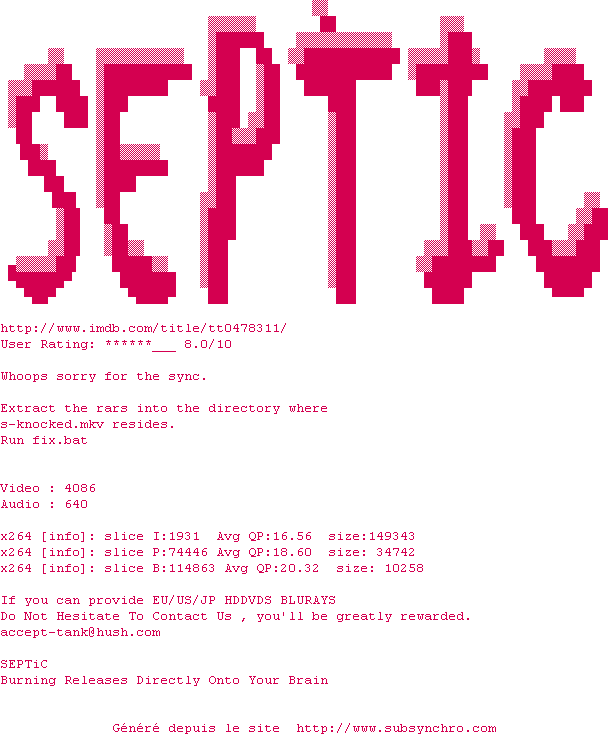 Voir le nfo de la release Knocked.Up.720p.HDDVD.x264-SEPTiC