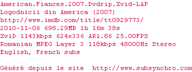 Voir le nfo de la release American.Fiances.2007.Dvdrip.Xvid-LAP