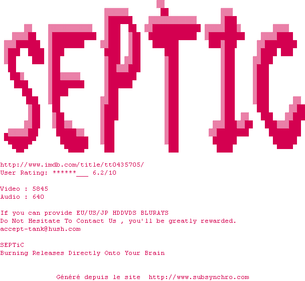 Voir le nfo de la release Next.720p.HDDVD.x264-SEPTiC