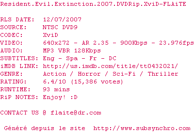 Ce film fait partie de la saga Resident Evil