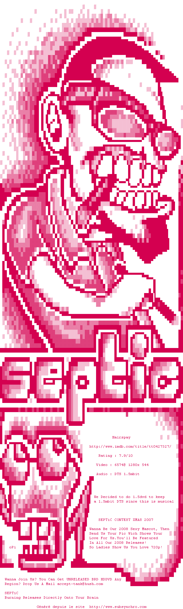 Voir le nfo de la release Hairspray.720p.BluRay.x264-SEPTiC