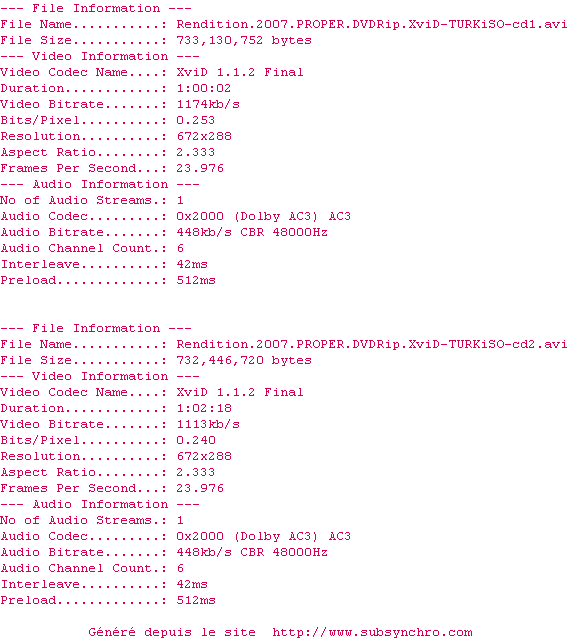 NFO de Rendition.2007.PROPER.DVDRip.XviD-TURKiSO