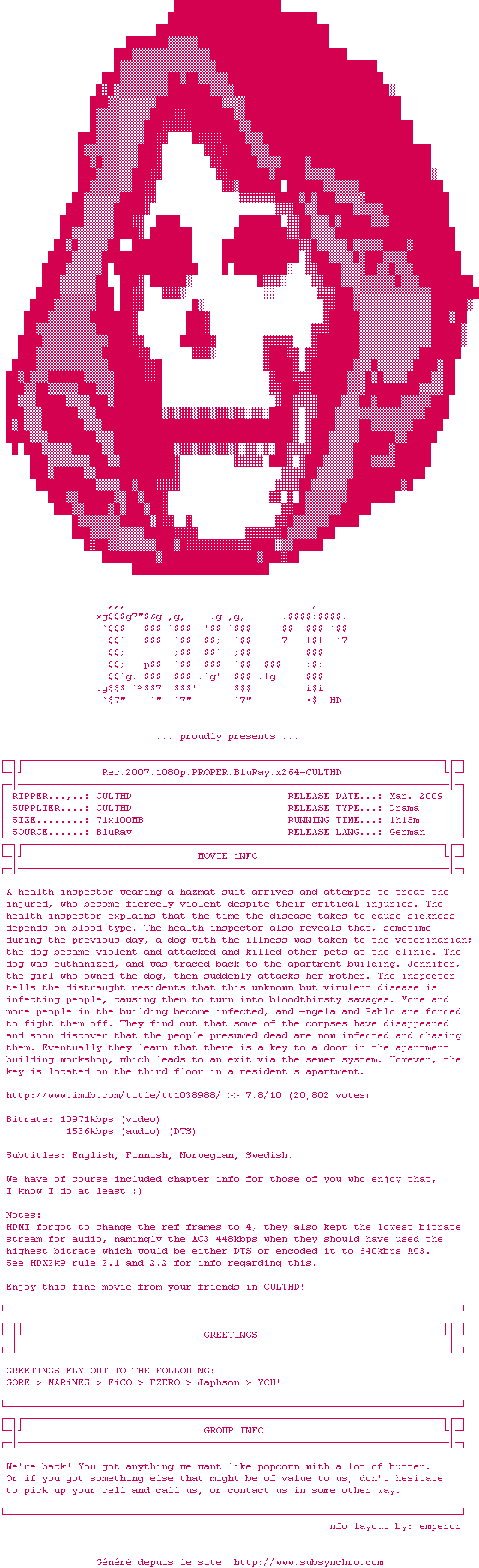 NFO de Rec.2007.1080p.PROPER.BluRay.x264-CULTHD