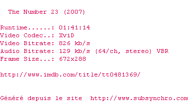 The.Number.23.UNRATED.DVDRip.XviD-NUMBER23.srt Ajouté par XeiS Ajoute le 16-01-2010 09:46:33 Format : SRT Italique : Non Taille : 0.00Ko Telechargement : 144 Ajouter cette release à ma collection en cas de telechargement des sous-titres 0 0 0 Telecharger le ZiP contenant NFO, Affiche, Sous-titre (*.srt) Commentez le fichier The.Number.23.UNRATED.DVDRip.XviD-NUMBER23.srt Commentez le fichier The.Number.23.UNRATED.DVDRip.XviD-NUMBER23.srt Commentez ce fichier Le fichier 52-1263631593.srt n'existe pas ! Telechargez le RSS « Fichier de la release The.Number.23.UNRATED.DVDRip.XviD-NUMBER23 » Retour au film « Le Nombre 23 »