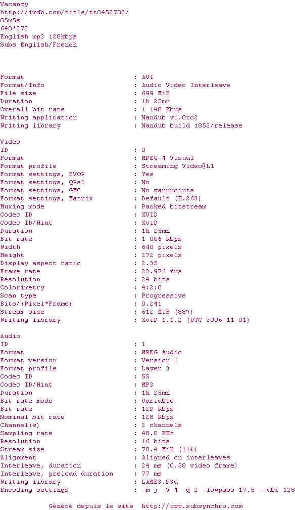 Telechargez le RSS « Fichier de la release Vacancy.DVDRip.XviD-NeDiVx »