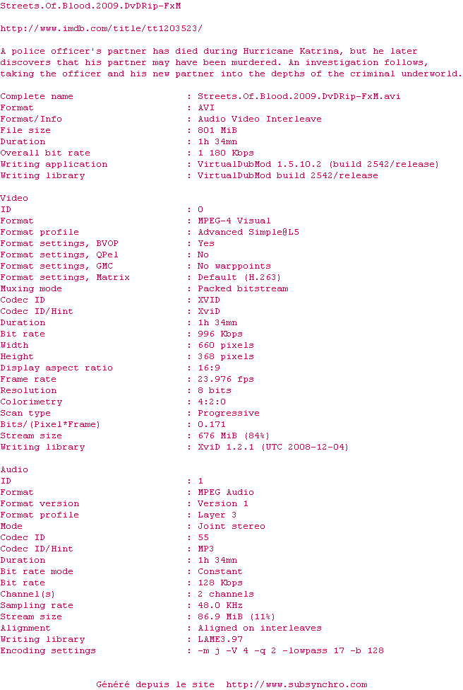 Voir le nfo de la release Streets.Of.Blood.2009.BluRay.720P.DTS.x264-CHD
