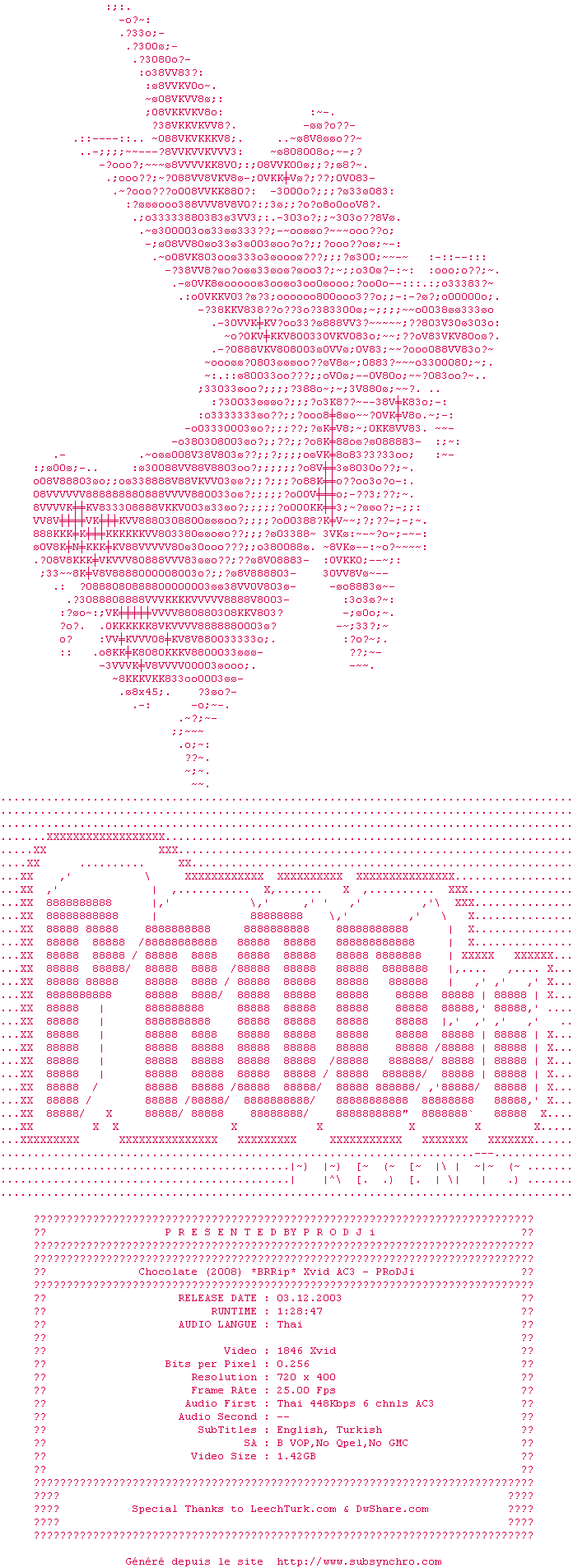 Voir le nfo de la release Chocolate.2008.BRRip.AC3-PRoDJi