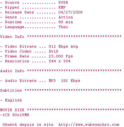 Voir le nfo de la release Chocolate.2008.DVDRip.XviD-KMP