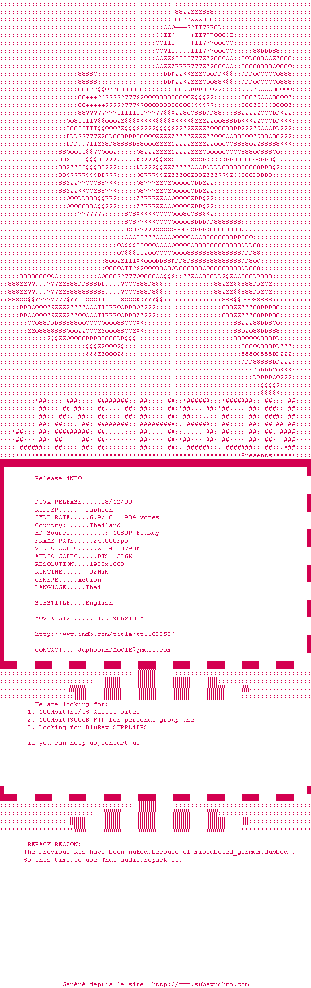 Voir le nfo de la release Chocolate.2008.REPACK.1080p.BluRay.x264-Japhson