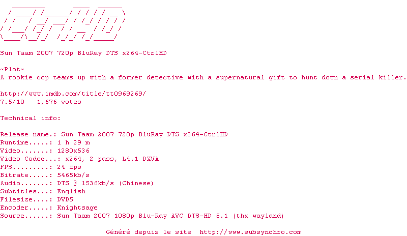 Le commentaire de Yaumegui Commente par Yaumegui (554), Le Lundi 16 Septembre 2013 à 14h46 Un polar qui flirte avec le fantastique. To maîtrise absolument sa réalisation et le montage. A voir absolument. 9.5 / 10 1 0