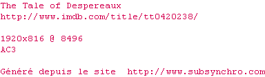 La Légende de Despereaux (The Tale of Despereaux) , realise en 2008