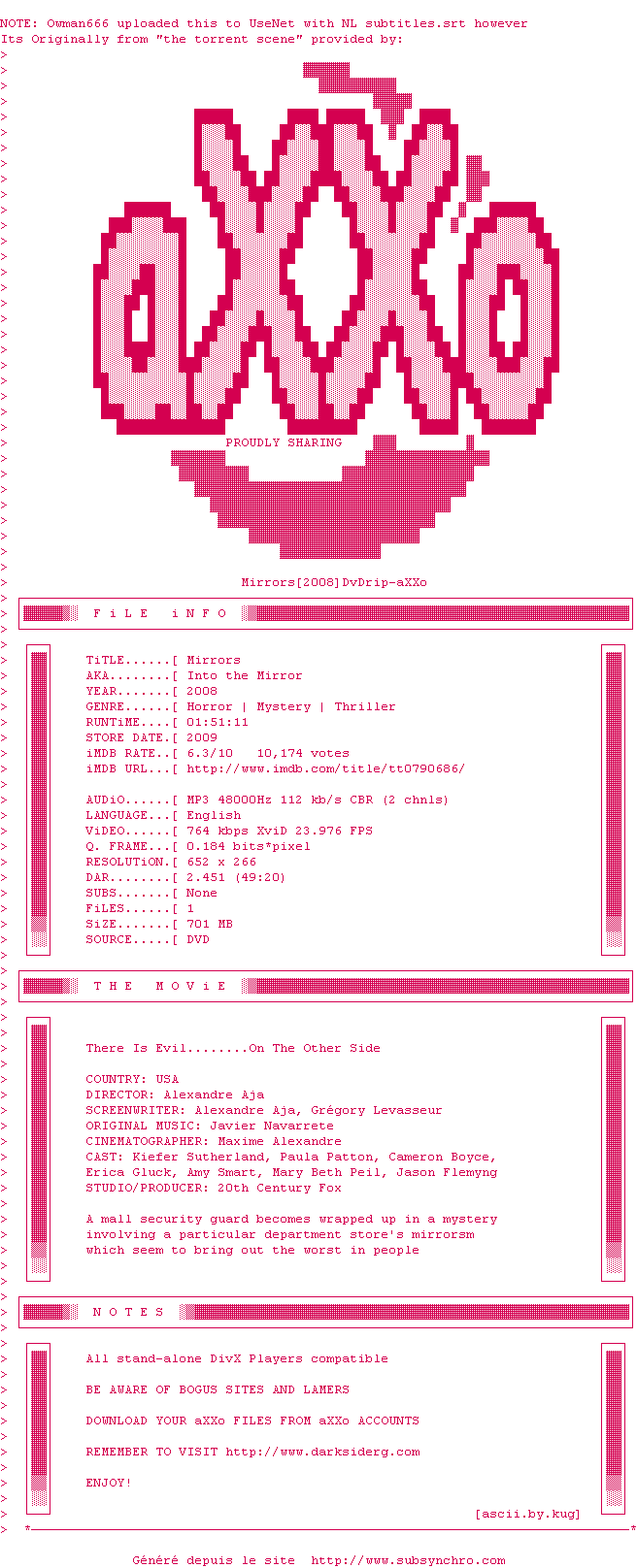 Voir le nfo de la release Mirrors.2008.DvDrip-aXXo