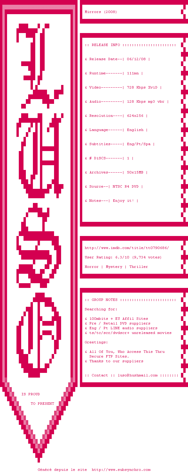 Voir le nfo de la release Mirrors.DVDRip.XviD-LUSO