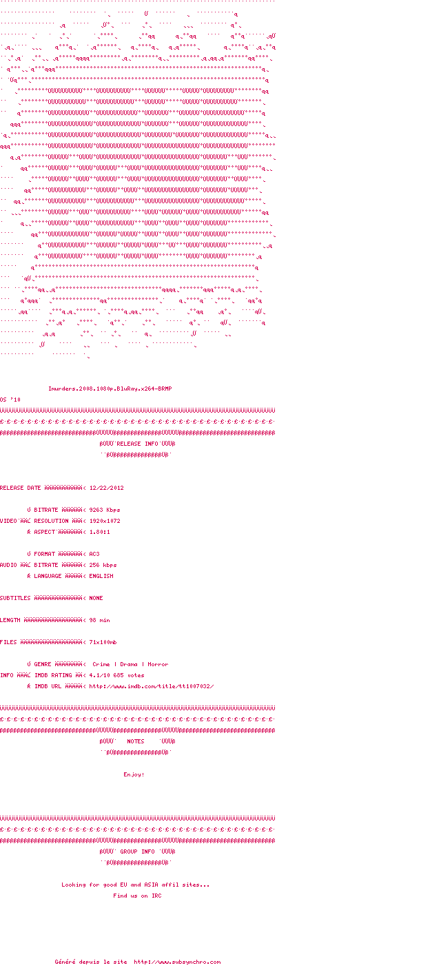Voir le nfo de la release Imurders.2008.1080p.BluRay.x264-BRMP