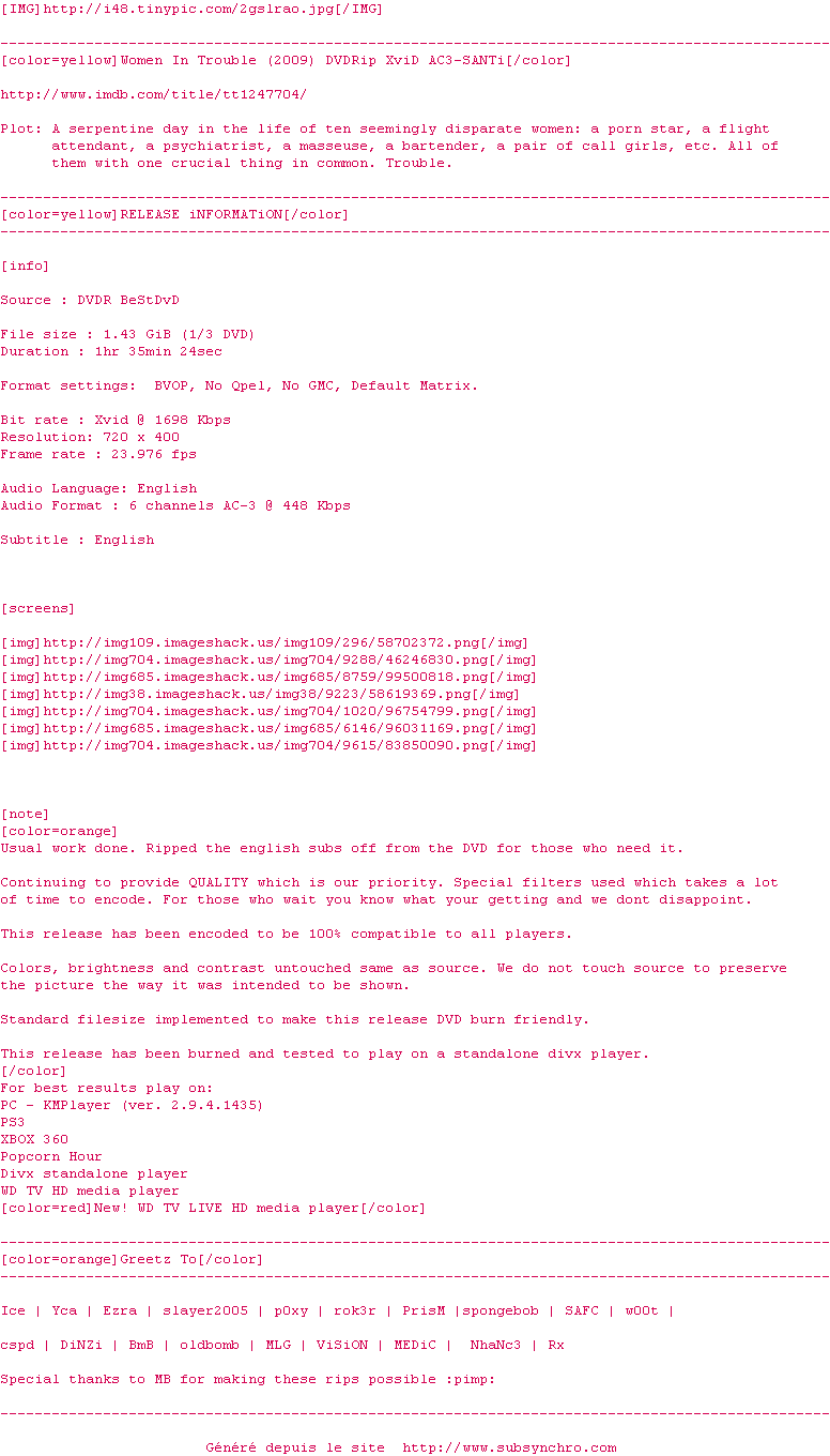 Voir le nfo de la release Women.In.Trouble.2009.DVDRip.XviD.AC3-SANTi