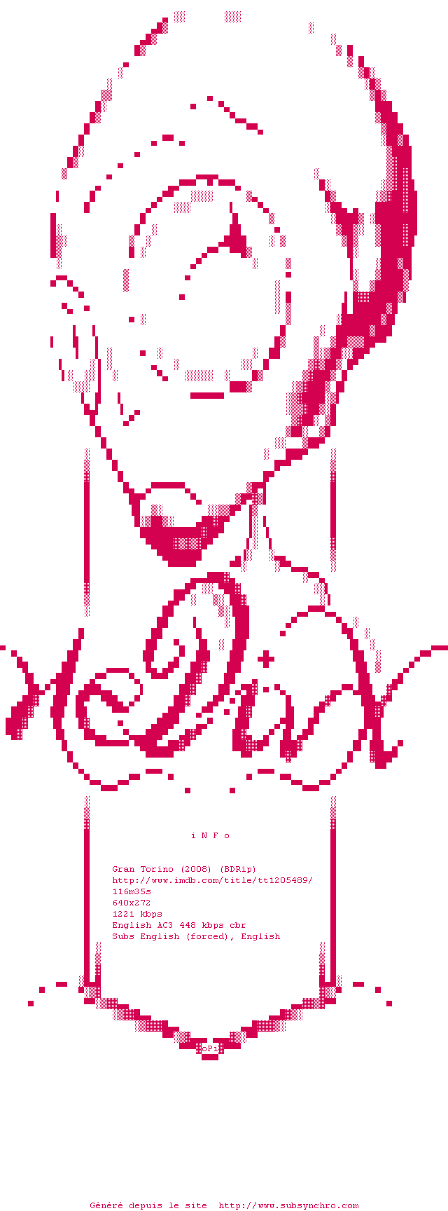 Voir le nfo de la release Gran.Torino.2008.1080p.BluRay.x264-DON