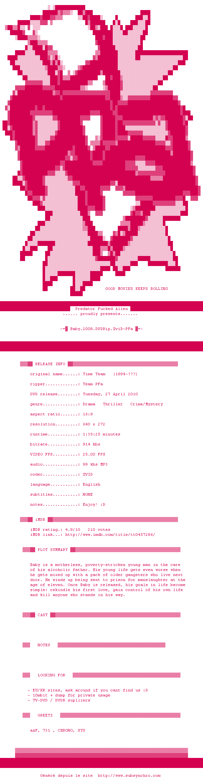 Nfo de la release Baby.2008.DVDRip.XviD-PFa