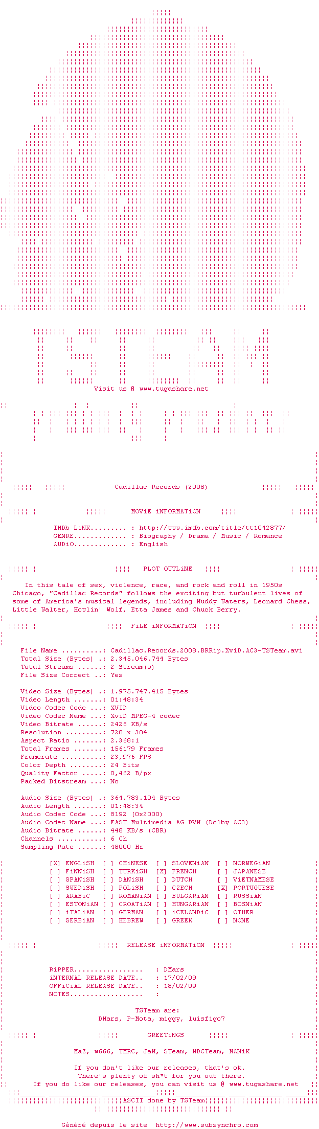 Cadillac.Records.2008.BRRip.XviD.AC3-TSTeam.sharethefiles.com.srt Ajouté par Ultimhate Ajoute le 17-08-2010 02:09:55 Format : SRT Italique : Non Taille : 0.00Ko Telechargement : 77 Ajouter cette release à ma collection en cas de telechargement des sous-titres 0 0 0 Telecharger le ZiP contenant NFO, Affiche, Sous-titre (*.srt) Commentez le fichier Cadillac.Records.2008.BRRip.XviD.AC3-TSTeam.sharethefiles.com.srt Commentez le fichier Cadillac.Records.2008.BRRip.XviD.AC3-TSTeam.sharethefiles.com.srt Commentez ce fichier Le fichier 138-1282003825.srt n'existe pas ! Telechargez le RSS « Fichier de la release Cadillac.Records.2008.BRRip.XviD.AC3-TSTeam » Retour au film « Cadillac Records »