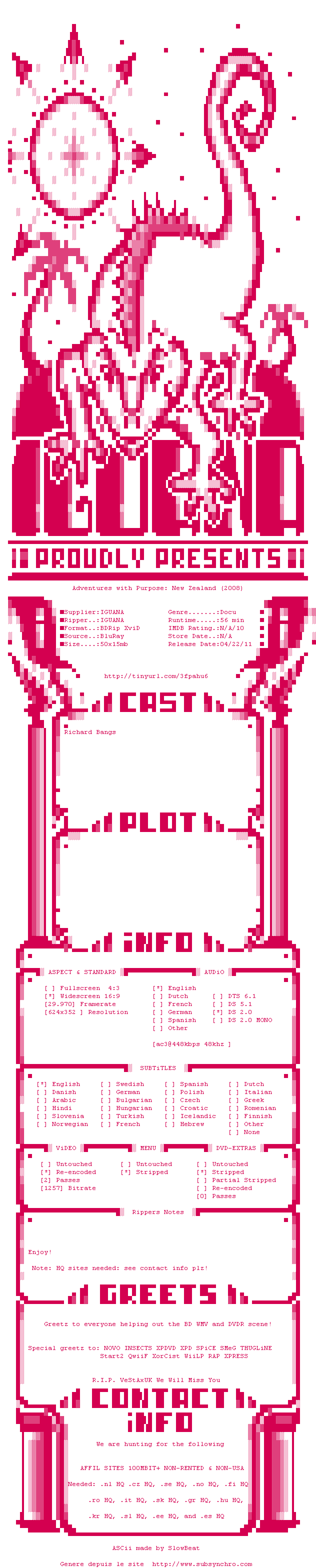 Telechargez le RSS « Fichier de la release Adventures.With.Purpose.New.Zealand.BDRip.XviD-IGUANA »