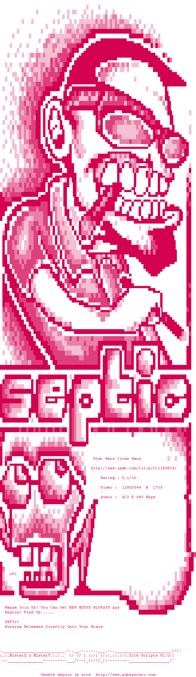 Telechargez le RSS « Fichier de la release Star.Wars.The.Clone.Wars.720p.BluRay.x264-SEPTiC »