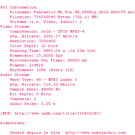 Voir le nfo de la release The.Fantastic.Mr.Fox.2009.720p.BluRay.x264.DTS-WiKi