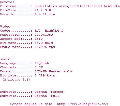Voir le nfo de la release Wrong.Turn.3.Left.For.Dead.2009.1080P.BLURAY.H264-UNDERTAKERS