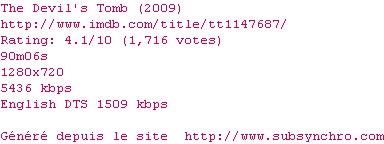 Voir le nfo de la release The.Devils.Tomb.2009.720p.BluRay.x264-BestHD