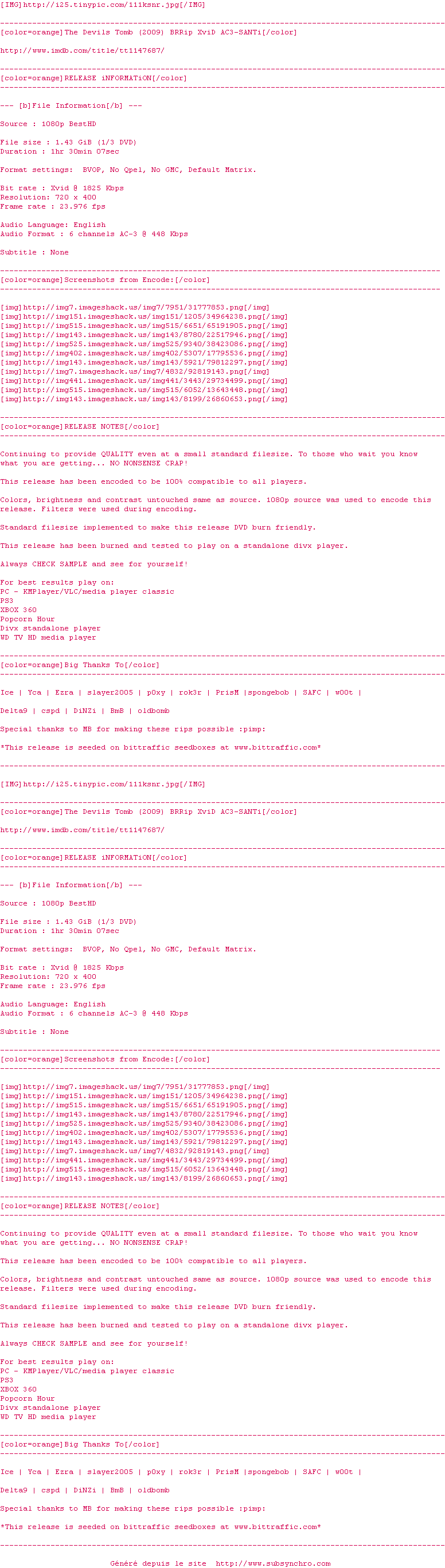 Voir le nfo de la release The.Devils.Tomb.2009.BRRip.XviD.AC3-SANTi