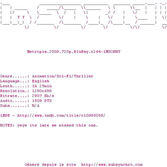 Le commentaire de plopingo Commente par plopingo (43), Le Mercredi 09 Novembre 2011 à 10h13 Très bon film, ça change des films d'animation qui ce font actuellement. 1 1