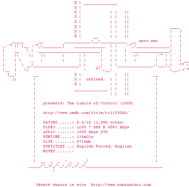 Voir le nfo de la release The.Limits.of.Control.2009.LIMITED.DVDRip.XviD-AMIABLE