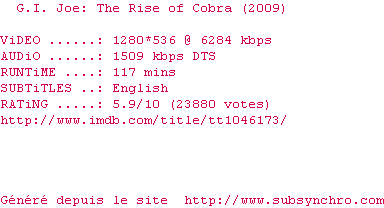 Le commentaire de Youpimatin Commente par Youpimatin (6), Le Vendredi 12 Juillet 2013 à 09h49 Une daube infame comme seul Hollywood sait faire. Je ne suis vraiment pas contre les films pop-corn qui se regarde sans réfléchir pour se divertir mais celui-là est vraiment mauvais. 0.5 / 10 0 0