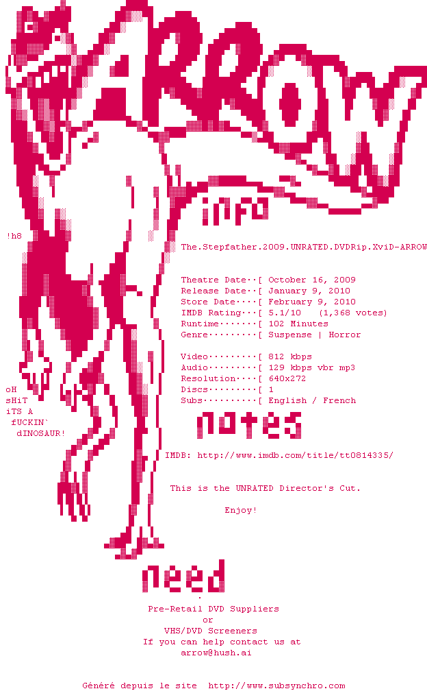 Voir le nfo de la release The.Stepfather.2009.UNRATED.DVDRip.XviD-ARROW
