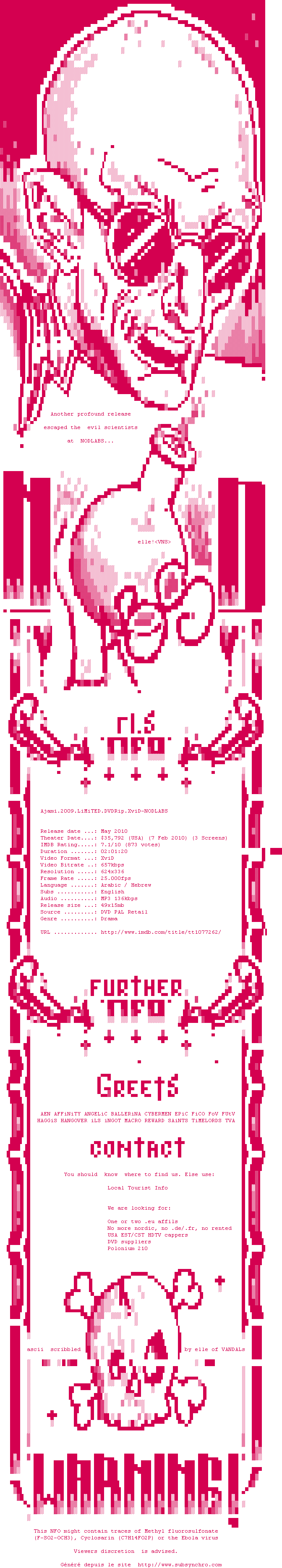 | Voir le nfo de la release Ajami.2009.LiMiTED.DVDRip.XviD-NODLABS | NODLABS | Ajami.2009.LiMiTED.DVDRip.XviD-NODLABS OpenSubtitles | 0 fichier | ||