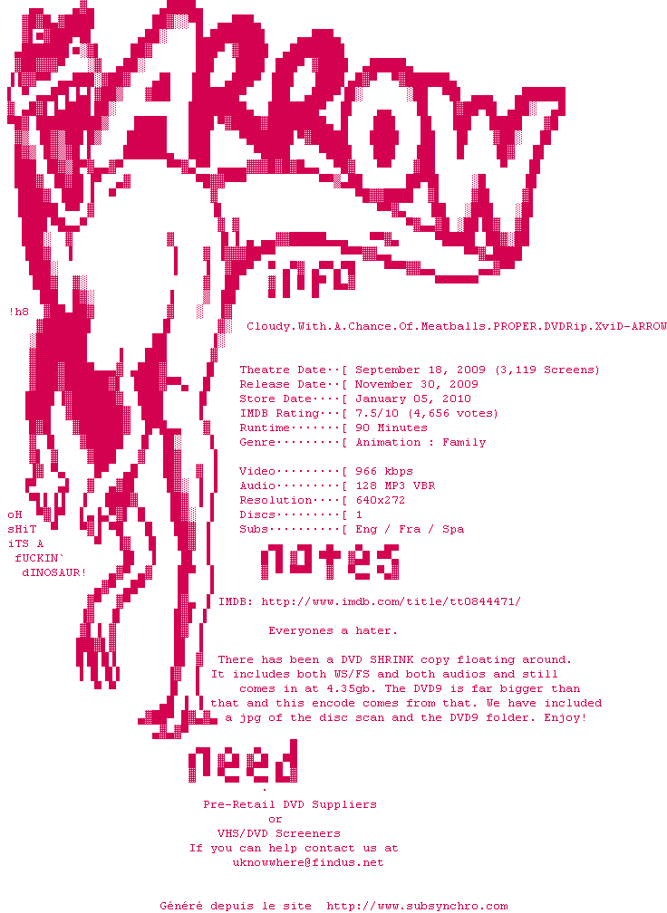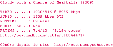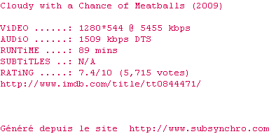 Le commentaire de Yaumegui Commente par Yaumegui (554), Le Mardi 22 Octobre 2013 à 22h35 Une animation un peu simplette, mais un assez bon moment avec les enfants. Ne méritait pas une suite en tout cas. A voir. 7.5 / 10 0 0