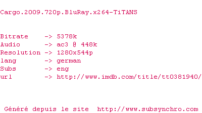 Voir le nfo de la release Cargo.2009.720p.BluRay.x264-TiTANS