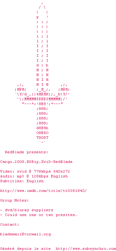 Voir le nfo de la release Cargo.2009.BDRip.XviD-RedBlade