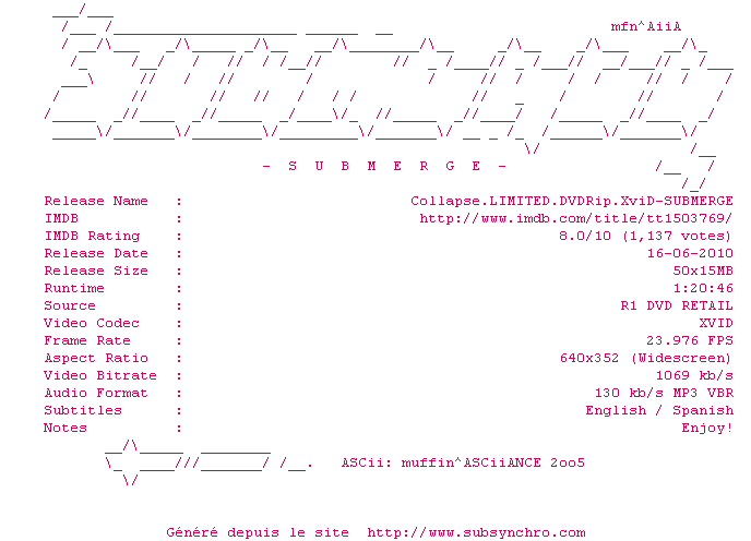 Voir le nfo de la release Collapse.LIMITED.DVDRip.XviD-SUBMERGE