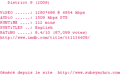 Le commentaire de Yaumegui Commente par Yaumegui (554), Le Dimanche 05 Mai 2013 à 13h39 Un très bon film de SF avec sur fond d'apartheid. 9.5 / 10 1 0
