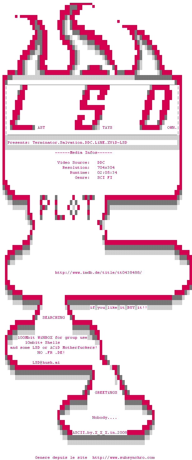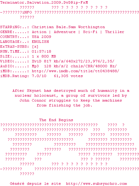 Voir le nfo de la release Terminator.Salvation.DDC.LiNE.XViD-LSD