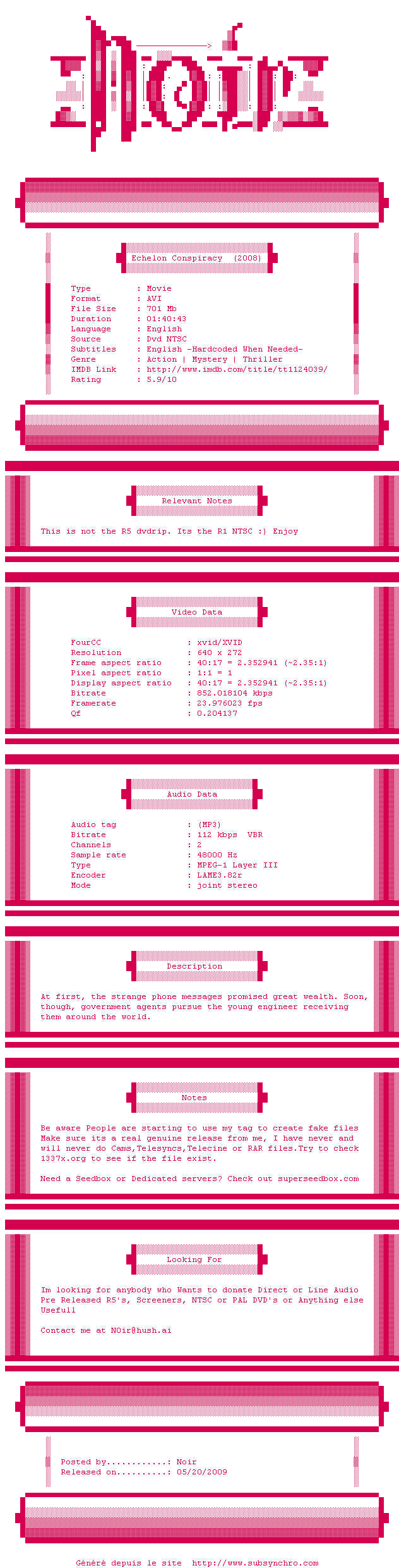 Il y a 1 commentaire pour le film #340 !Le commentaire de plopingo