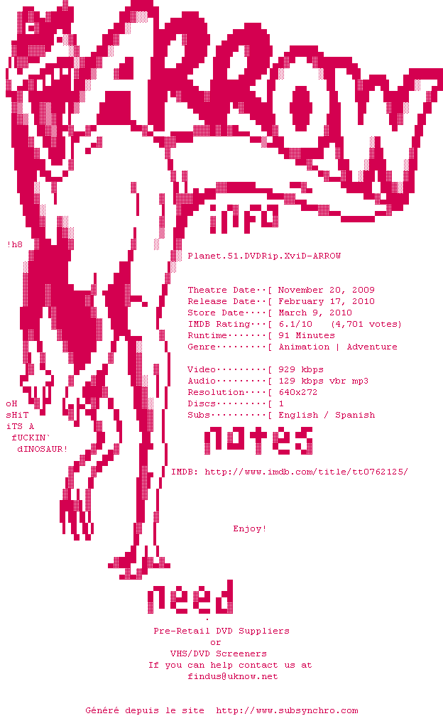 Le commentaire de Yaumegui Commente par Yaumegui (554), Le Lundi 16 Decembre 2013 à 15h13 Ça ne casse pas des briques, surtout si on compare avec Pixar, passage obligé à cause de l'astronaute aussi bête que Buzz l'éclair sortant de son paquet et des extra-terrestres verts, mais çà se laisse regarder avec les enfants. A conseiller pour les vacances de Noël. 7 / 10 1 0