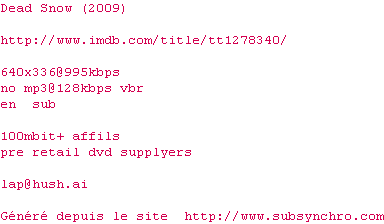 Voir le nfo de la release Dead.Snow.2009.720p.BluRay.x264-CLASSiC