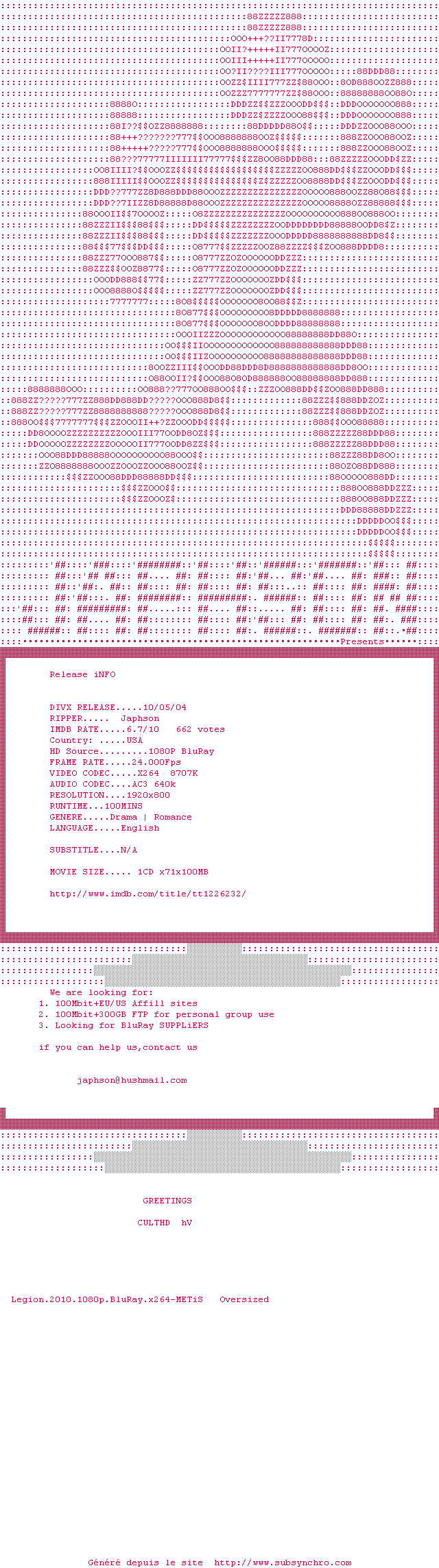 Voir le nfo de la release The.Greatest.2009.1080p.BluRay.x264-Japhson